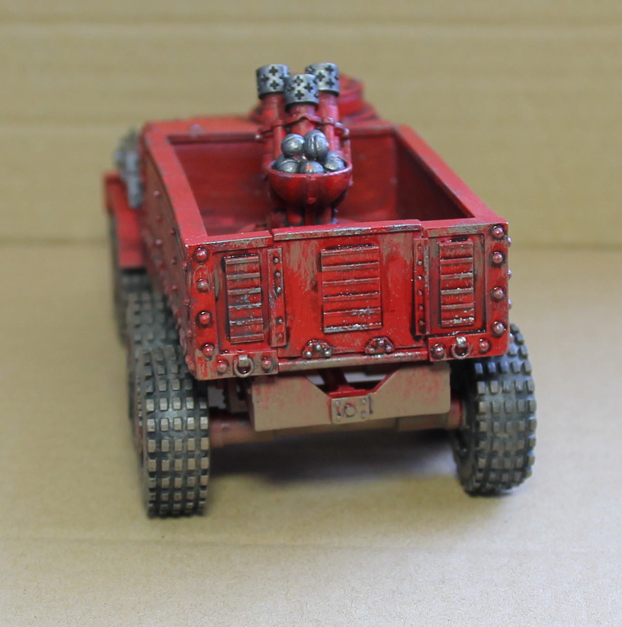 I've never managed to complete my U90 conversion, and didn't have the time to do that for Blog Wars 9, so I quickly kit bashed a Chimera hull, some Leman Russ tracks and one of my Abrogator artillery kits with the usual bits of plasticard and details from other kits. Again this is a first of 2, the second one is not completed yet.